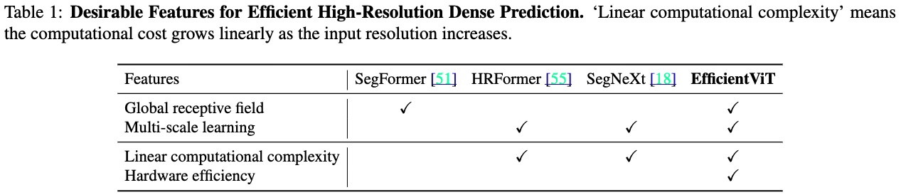 우리가 아는 한, EfficientViT는 high-resolution dense prediction에서 ReLU-based attentions's effectiveness를 입증한 최초의 연구이다.