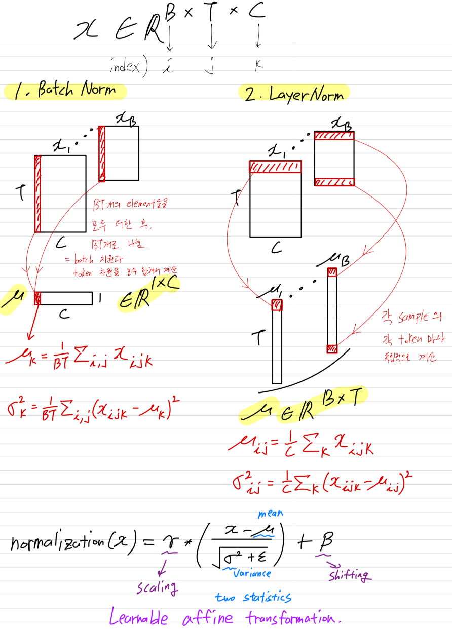 LN은 input tensor의 dimension을 그대로 유지하므로, input과 output elements 사이에 one-to-one 대응 관계를 만들 수 있으며,