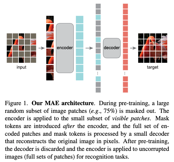decoder는 이 정보를 바탕으로 masked patch의 실제 pixel 값을 reconstruct하는 것.