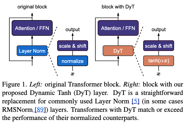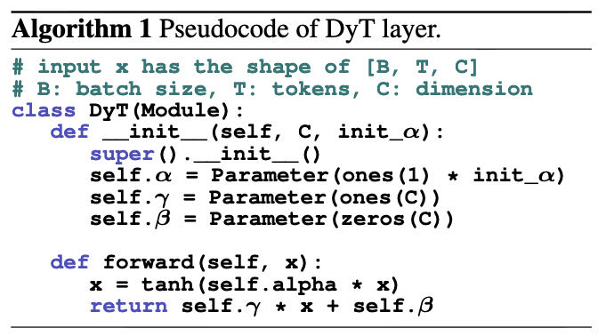 DyT를 적용하는 것은 Figure 1에 보이는 것처럼 간단하다: