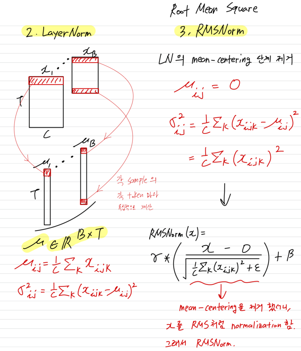 (AI 답): Transformer는 residual connection이 많아서, mean-centering이 크게 중요하지 않다. 그래서 mean-centering을 빼도 충분히 안정적으로 학습될 뿐더러 더 단순하고 빠르다.