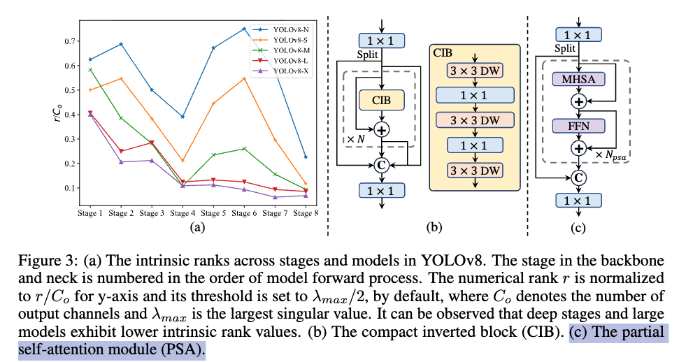 YOLOv6 3.0과 유사하지만, global feature를 extraction하기 위해 transformer-based module, Partial Self-Attention (PSA)이 추가됨.