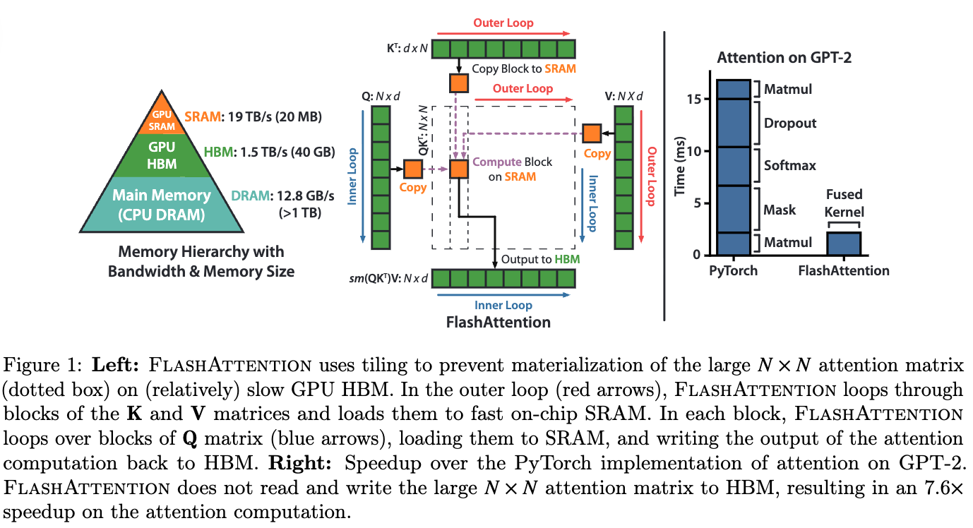 - HBM ↔ SRAM의 IO(HBM)가 computation(FLOPs)에 비해 더 bottleneck인 연산