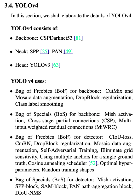 Bag of freebies(BoF)와 Bag of specials(BoS)를 자세히 분석하여, 아래와 같은 개선을 일궈냄.