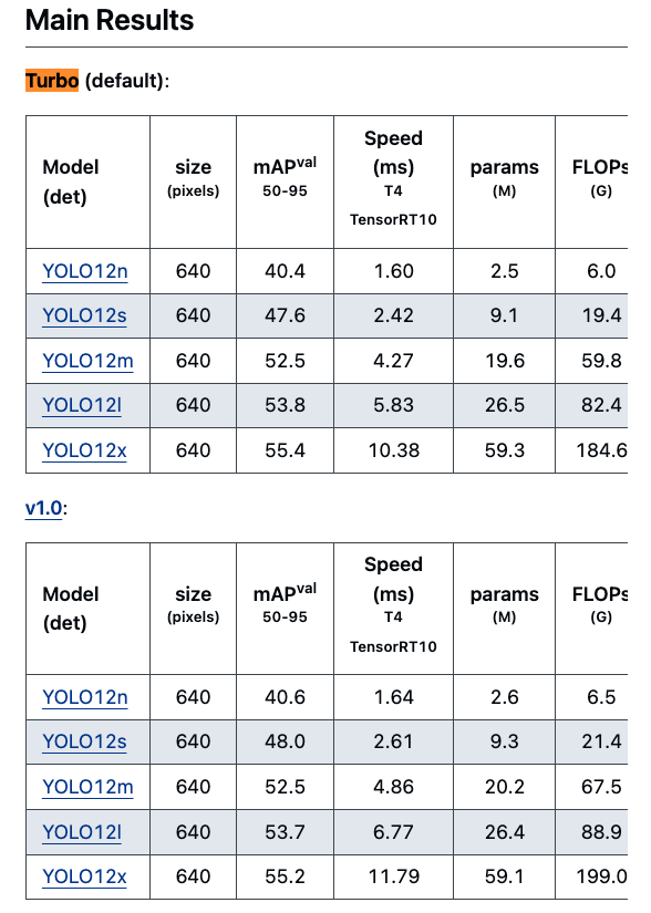 YOLOv12 .v1 vs .turbo는 무슨 차이?