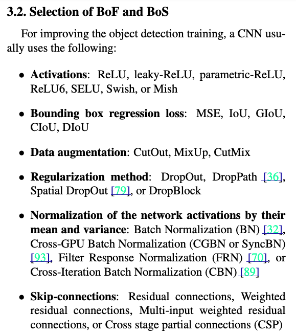 BoF는 단지 loss function, regularization methods, data augmentation, and label assignment methods와 같이 inference time에는 영향을 주지 않고 training time만 증가시키지만 성능을 높힐 수 있는 방법들.