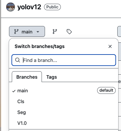 - 현재 main branch는 YOLOv12 turbo branch(default)이고,