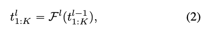 그리고 개의 intermediate transformer blocks 는 self-attention을 이용하여 input을 변형한다.)