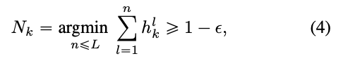 이를 위해, 우리는 cumulative halting score가 을 초과할 때 token stopping을 수행한다 :