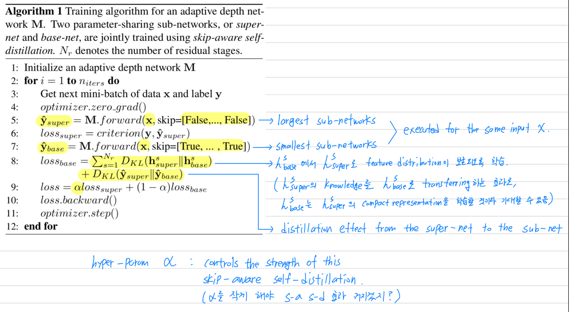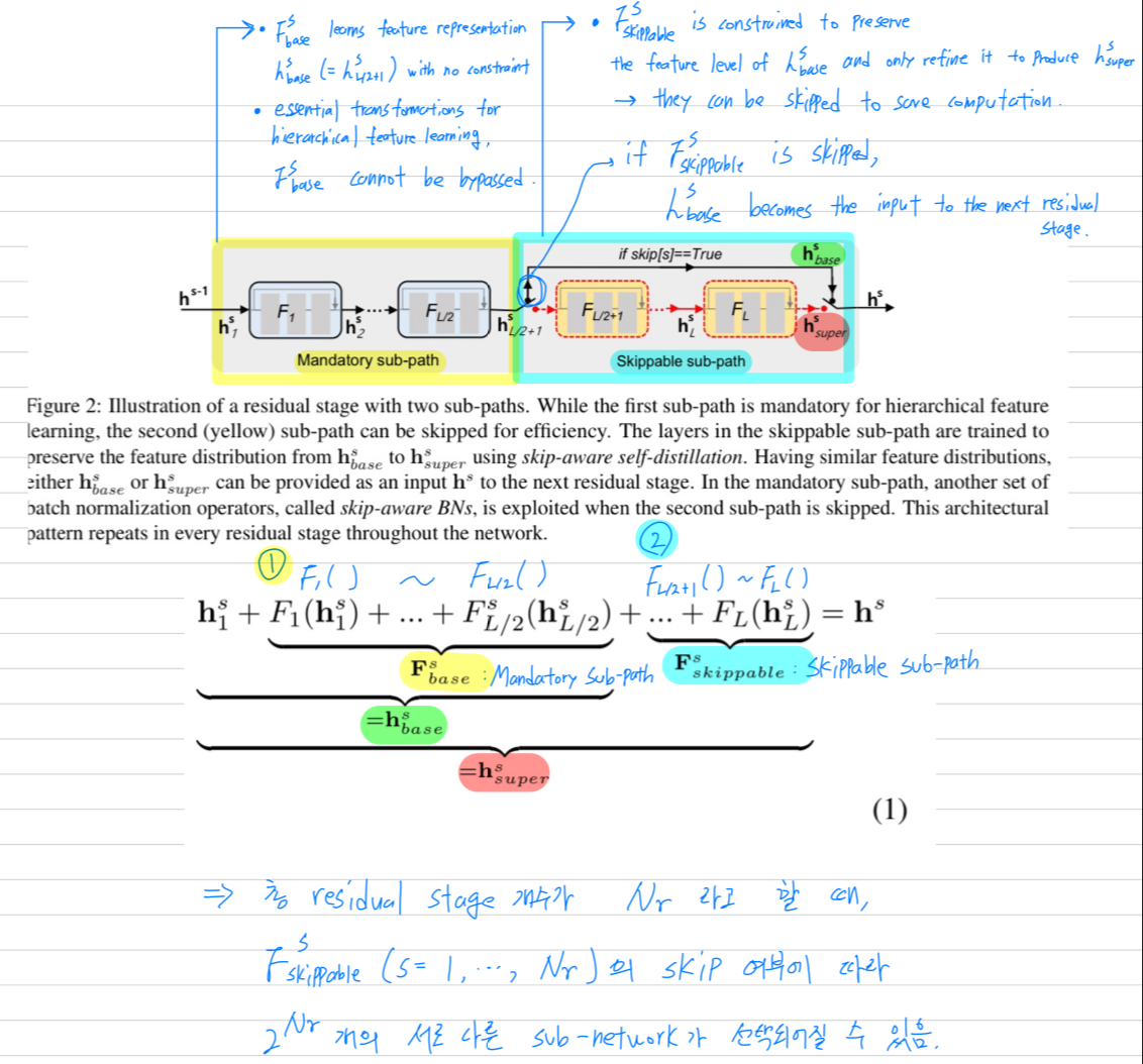 skip-aware self-distillation을 사용하여 선택된 sub-paths가