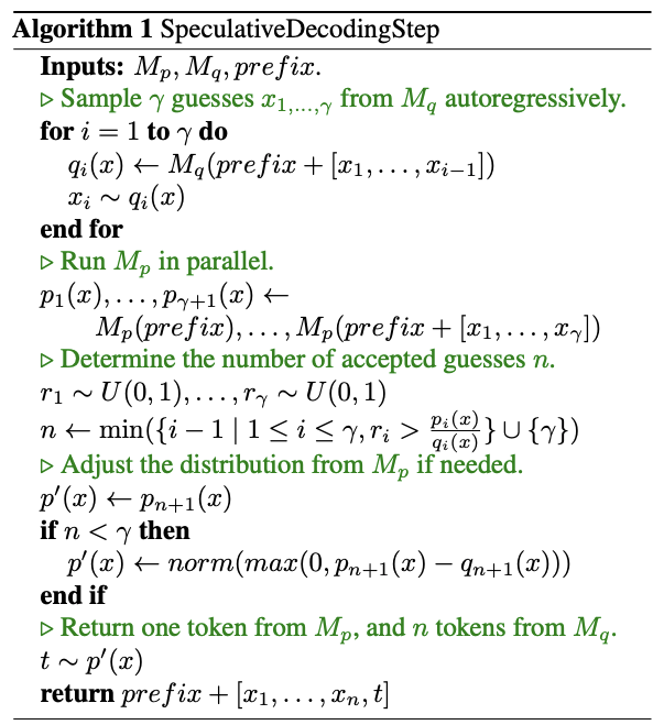여러 개의 token을 병렬로 계산하여 더 빠르게 sampling하는 Speculative Decoding.