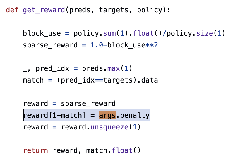 가능한 적은 block을 사용하도록 장려하는 보상을 극대화하기 위해