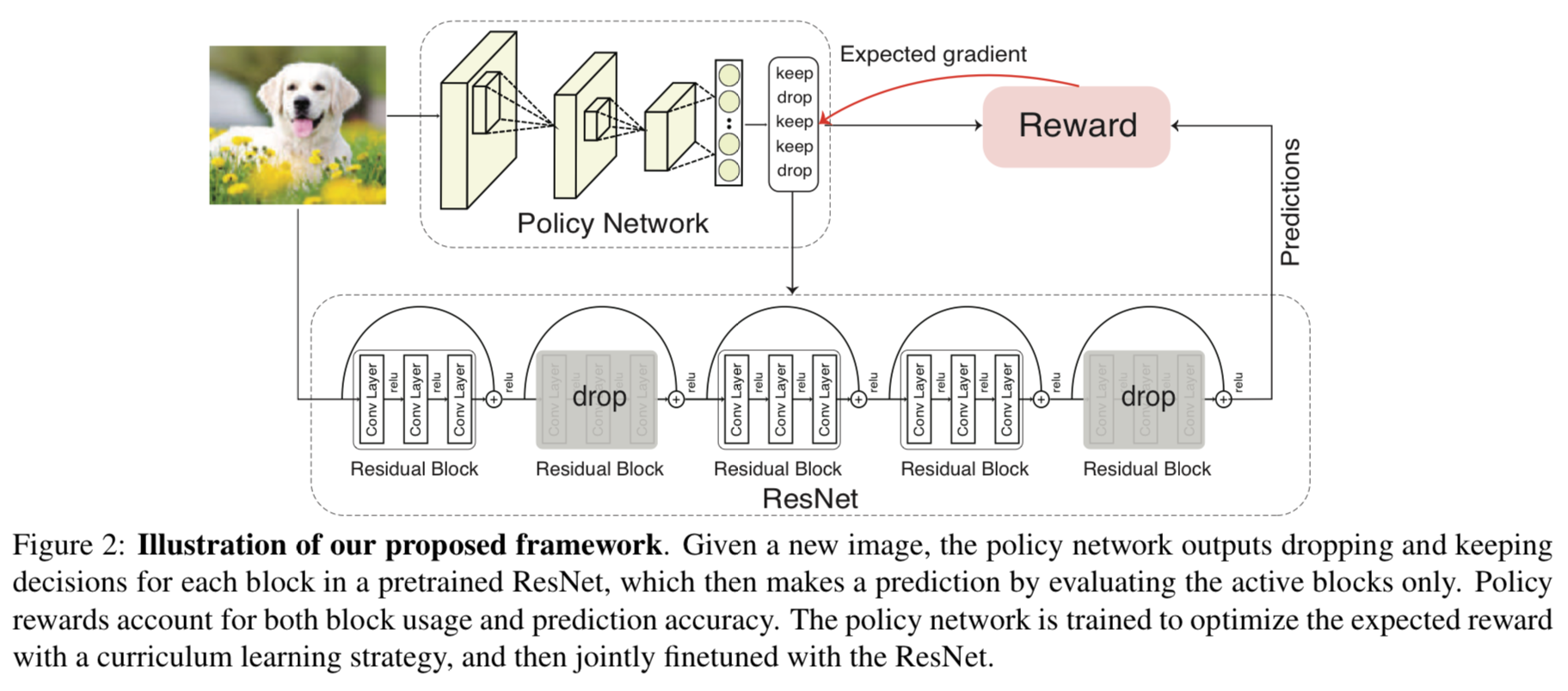 ResNet에서 더 빠른 추론을 수행하는 방법인 BlockDrop을 제안했다.