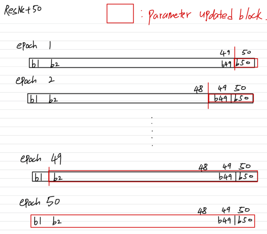- 왜 마지막 block부터 학습을 순차적으로 시킨 것일까?