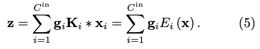 MoE conv layer를 구성하려면 해당 layer의 gate values g∈RCin을 사용하여 input channels을 scale하고,