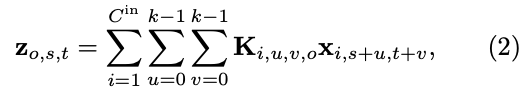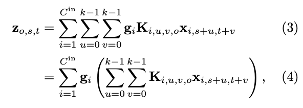 dimension k×k의 Cin×k×k×Cout conv kernel K을 갖는