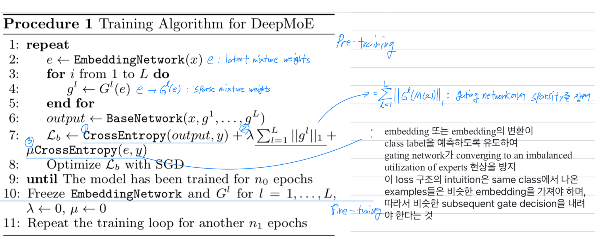 embedding network에 대한 auxiliary classification loss function과 gating network outputs에 대한 sparse regularization을 적용하여