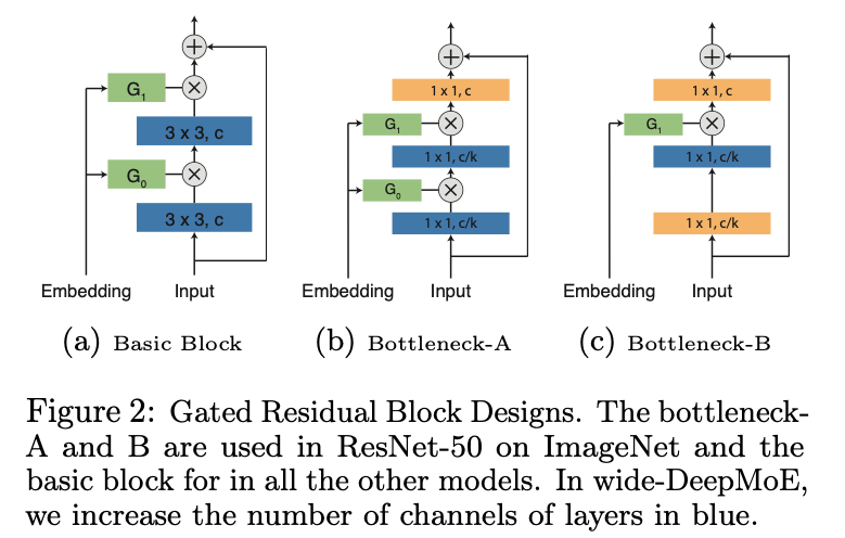 우리의 sparsely-gated가 있는 DeepMoE design은 standard CNN에 embedded할 수 있으며,