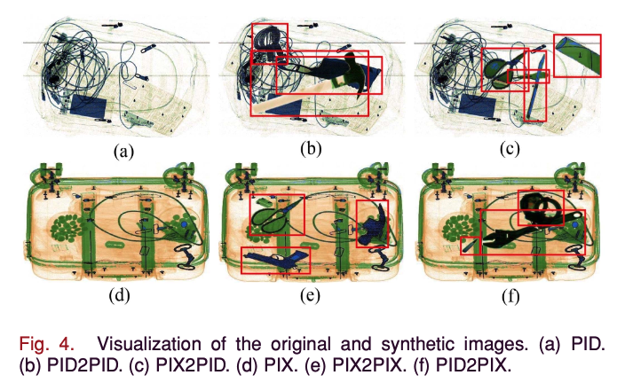 여기에는 동일한 dataset에서 잘라낸 물품과 붙인 bg image(즉, (b) PID2PID 및 (e) PIX2PIX)뿐만 아니라, 서로 다른 dataset에서 가져온 경우(즉, (c) PIX2PID 및 (f) PID2PIX)가 포함된다.