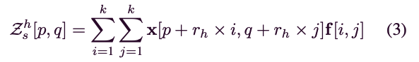 여기서 는 의 spatial location을 나타내며, 는 dilated convolutional kerel with size 이다.