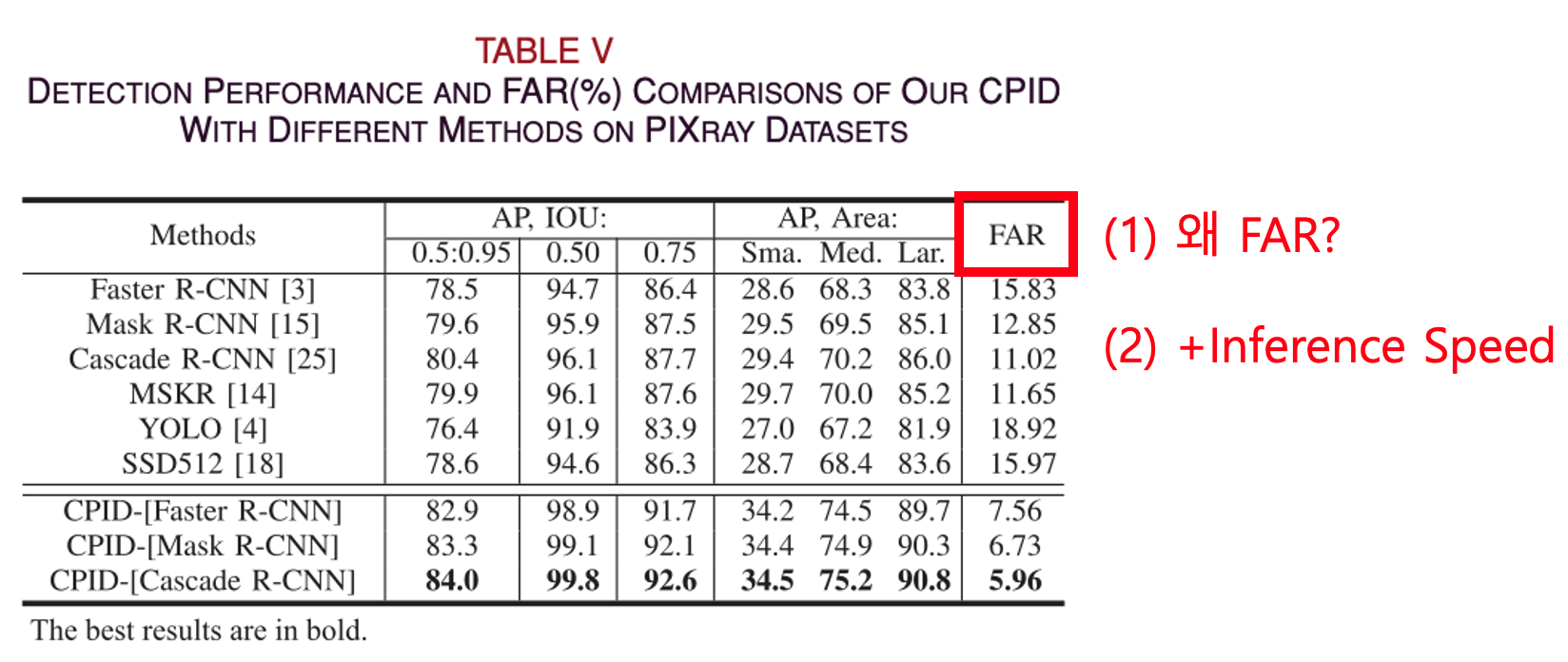 정확한 탐지와 더불어 사람들이 계속해서 주입되고 빠른 처리가 필요한 보안 검색대의 특성상 탐지 속도도 중요할 것이라고 생각합니다.