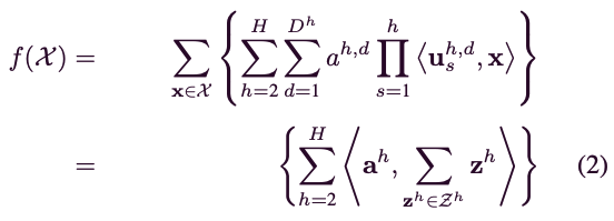 는 차 representation로, rank-1 tensor decomposition(e.g., )로 근사할 수 있으며, (1)은 다음과 같이 재정의할 수 있다: