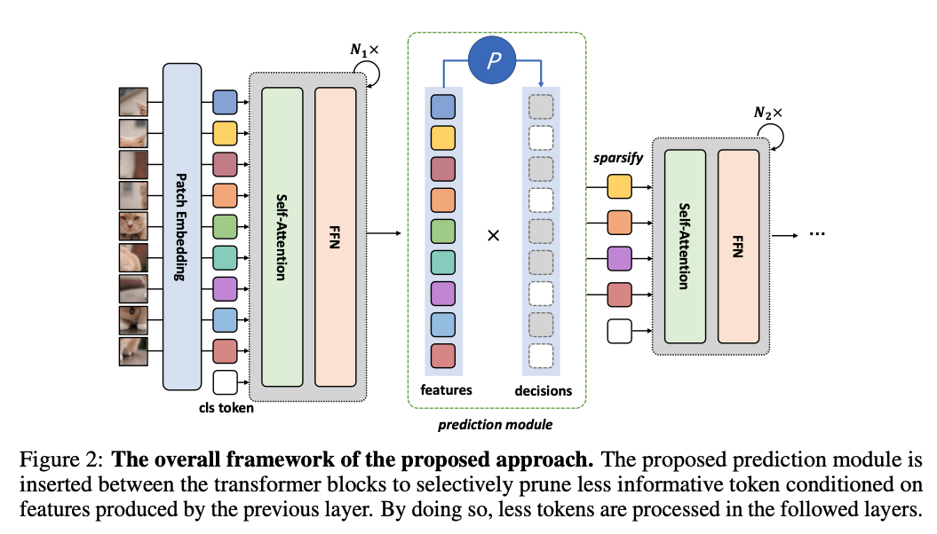 Rao, Yongming, et al. "Dynamicvit: Efficient vision transformers with dynamic token sparsification." Advances in neural information processing systems 34 (2021): 13937-13949.