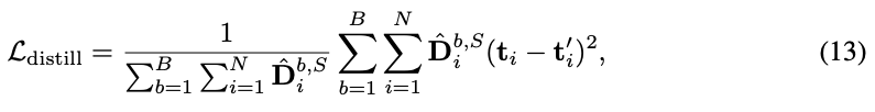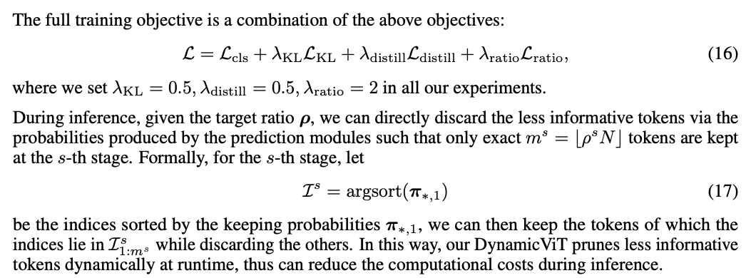 여기서, 와 는 각각 DynamicViT과 teacher model의 마지막 block 이후 -th token을 나타낸다.