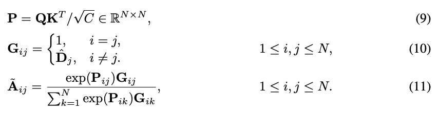 Eq (11)은 kept tokens들만을 고려하여 계산된 attention matrix와 동일한 형태를 유지하면서도 의 고정된 shape을 갖는 masked attention matrix 를 계산한다.