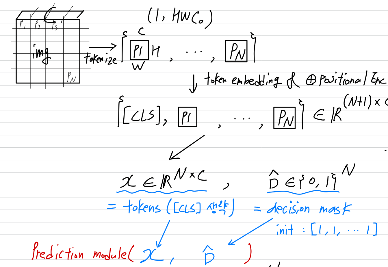 이 module은 ViT의 여러 layer에 추가되며, 각 prediction module 이후 점진적으로 더 많은 token을 pruning하여 계층적으로 sparsification을 수행한다.