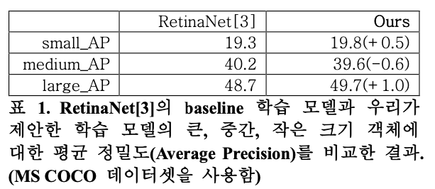 small AP는 baseline보다 0.5 상승, large AP는 baseline보다 1.0 상승.