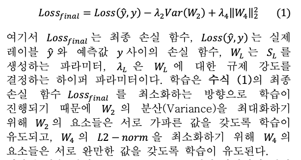 그래서 Loss Function에 weight regularization term을 추가하였다. High resolution feature map을 생성하는 weight에는 서로 가파른 값을 갖도록 variance maximization regularization term을 적용하고, Low resolution feature map을 생성하는 weight에는 서로 완만한 값을 갖도록 L2 regularization term을 적용했다.