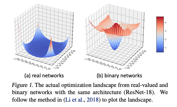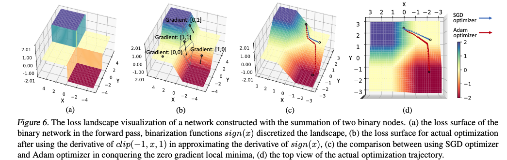 또한, Adam은 adaptive learning rate strategy를 통해 BNN의 rugged(거친) loss surface을 보다 효과적으로 처리하고, 더 나은 optimum에 도달하며 generalization ability가 높다는 것을 발견했다.