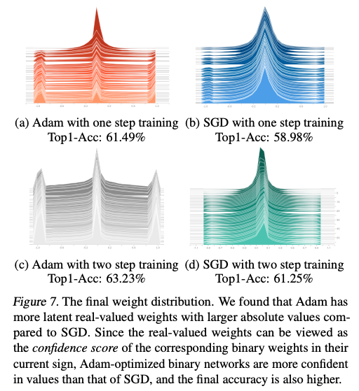 real-valued weights를 confidence score의 개념으로 볼 수 있기 때문에 Adam의 real-valued weights는 더 confidence를 갖고 있음을 의미.