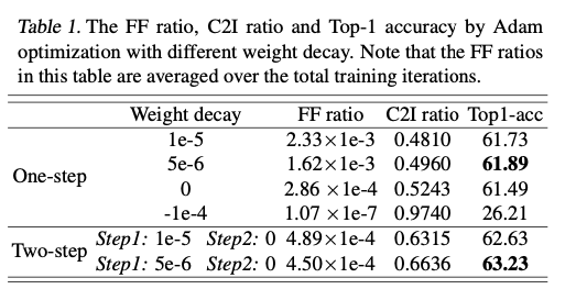 two-step에서는 weight들의 학습 진행 상황과 안정성을 고려하여 weight decay를 없애서 더 이상 0에 가까워지도록 유도하지 않고 confidence를 갖게 내버려둠로써 학습 결과를 향상.