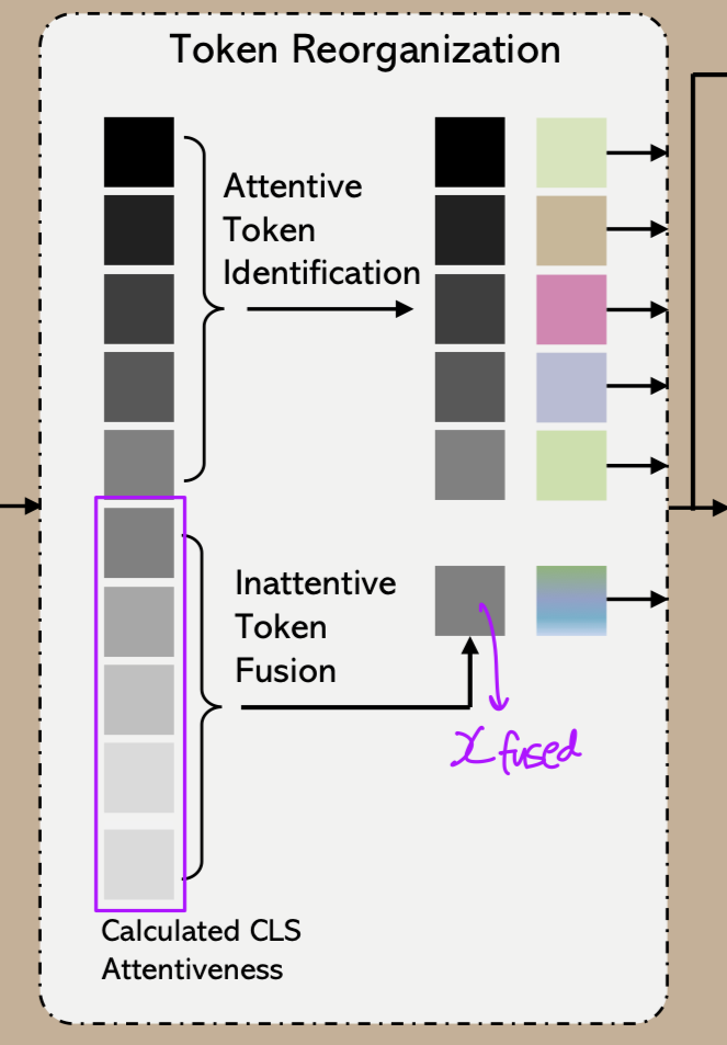 이러한 문제를 완화하기 위해, 우리는 현재 단계에서 inattentive tokens을 attentive tokens에 보완하기 위해 융합하는 방법을 제안한다.