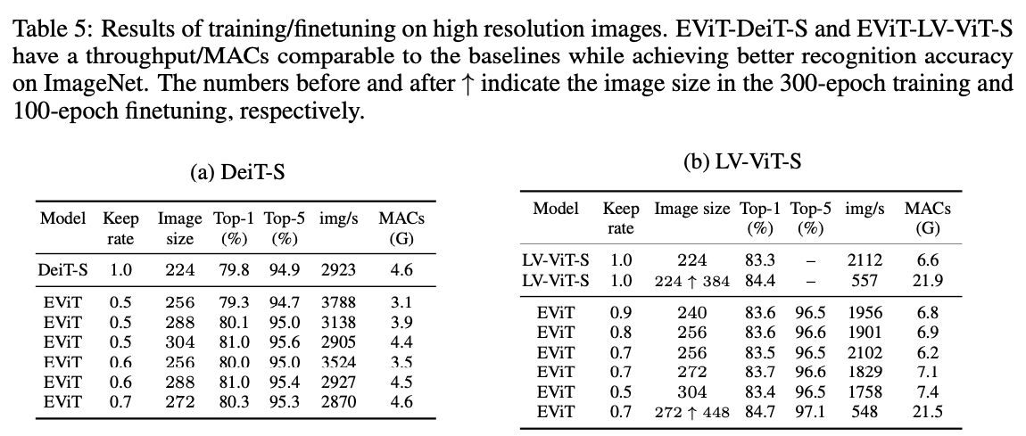 이 방법을 통해 EViT는 두 가지 측면에서 ViT를 향상시킨다.