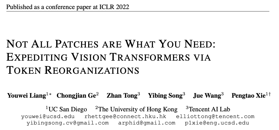 관련된 또 다른 연구인 DynamicViT는 fully trained된 ViT에 대해 token 수를 줄이는 방법을 소개하며,