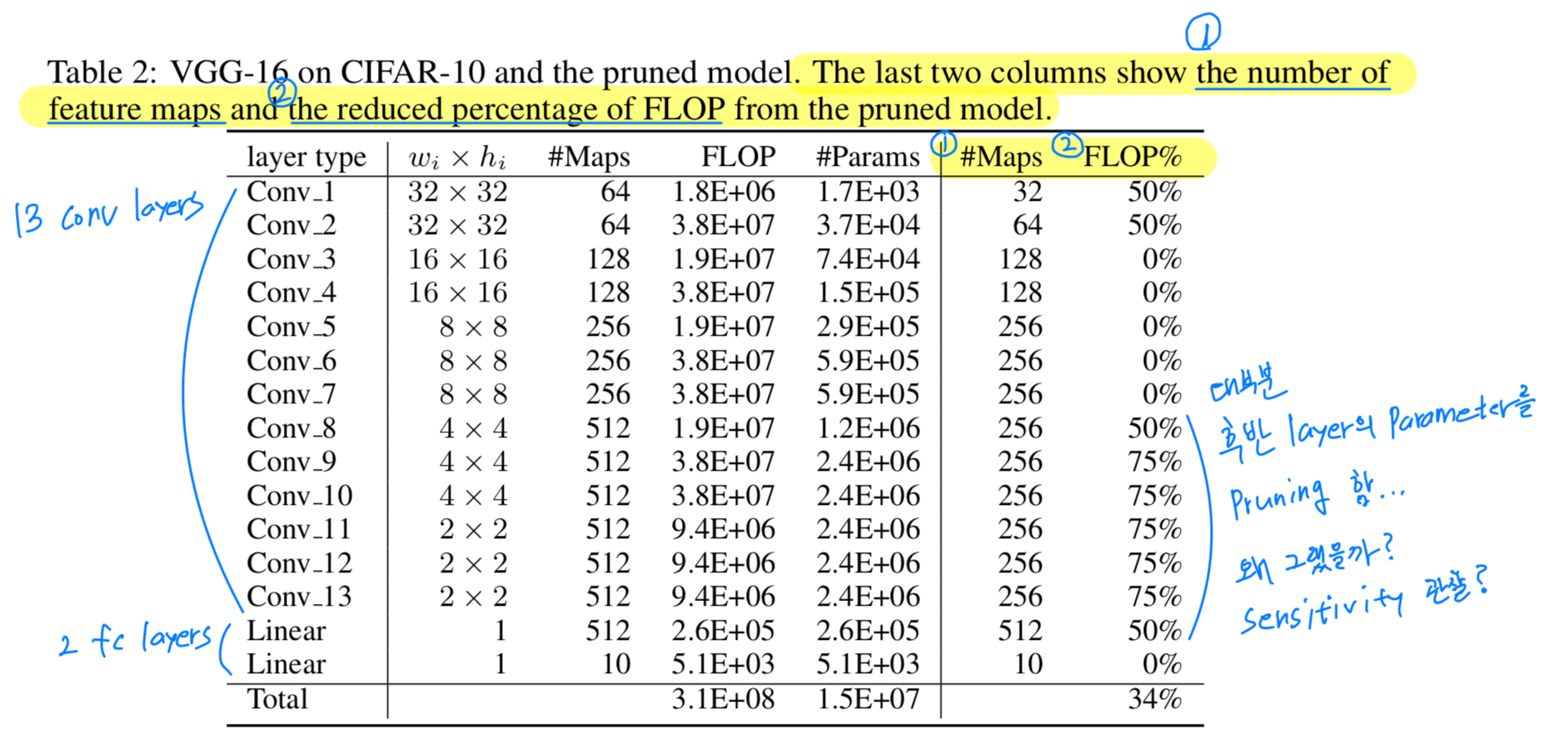 Table 2에서 볼 수 있듯이, CIFAR-10에 대한 VGG-16은