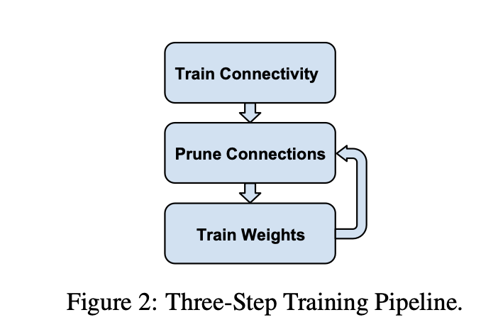 pruning weights with small magnitudes and then retraining without hurting the overall accuracy를 함으로써 인상적인 compression rates를 보여줬다.