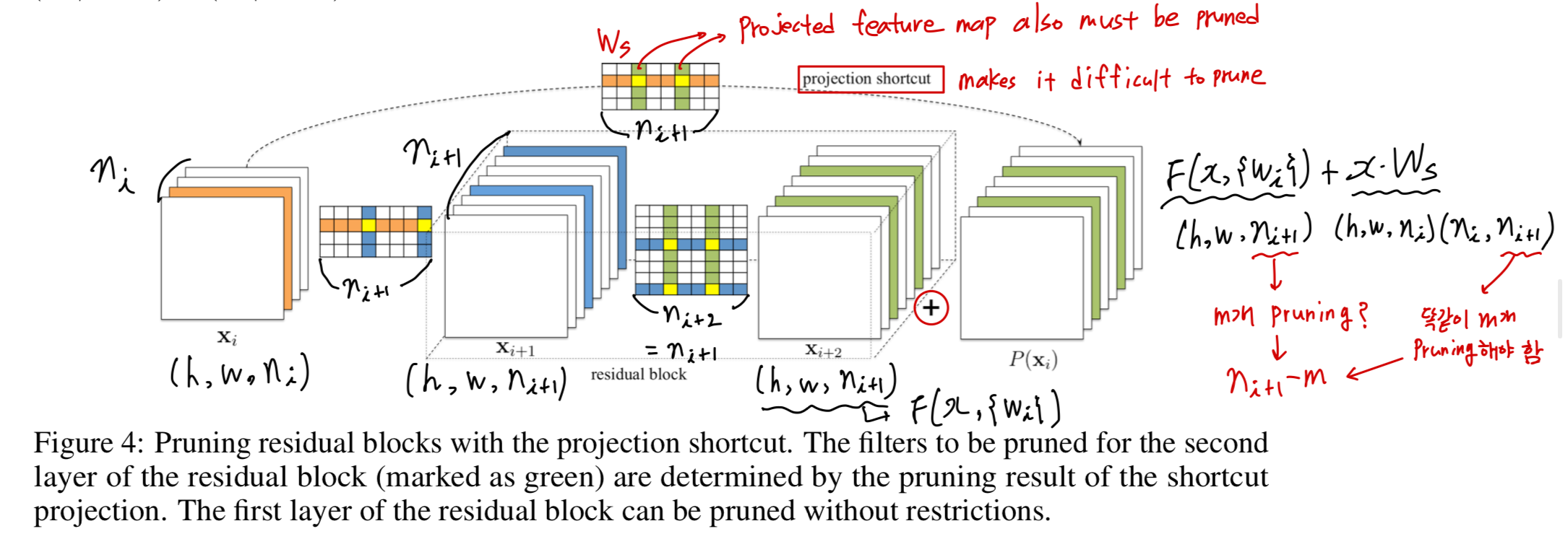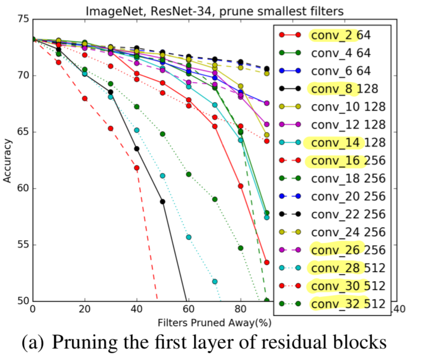 를 갖는 residual block이 있다.우리는 첫번째로 각 residual block의 first layer를 prune했다.