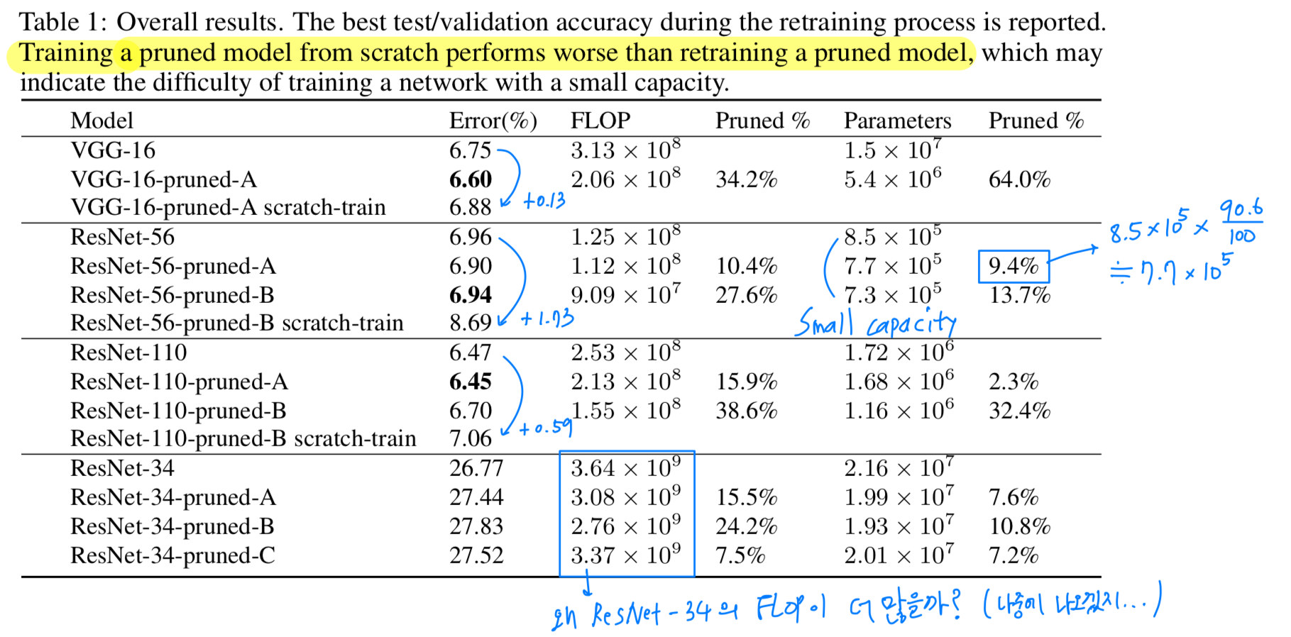 이것이 왜 ResNet-110이 ResNet-56보다 pruning하기 더 쉬운 이유가 될 것이다.