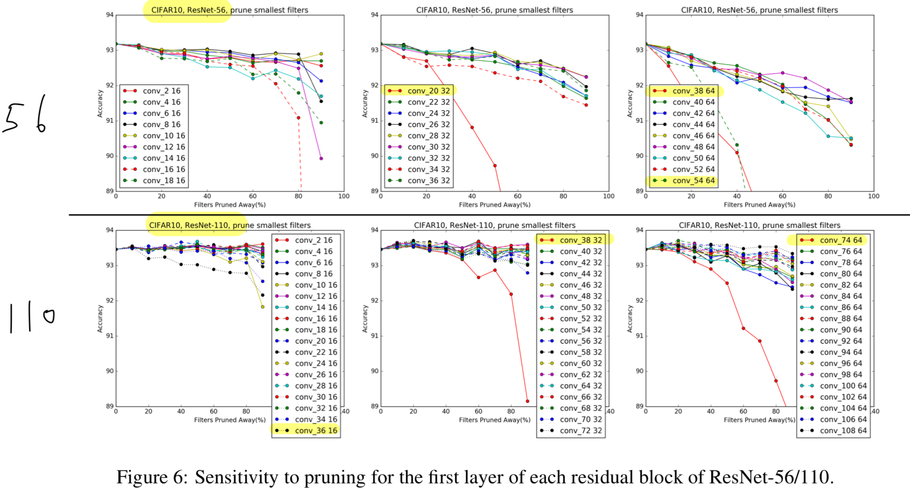 ResNet-56/110에 대한 pruning result에서 볼 수 있듯이,