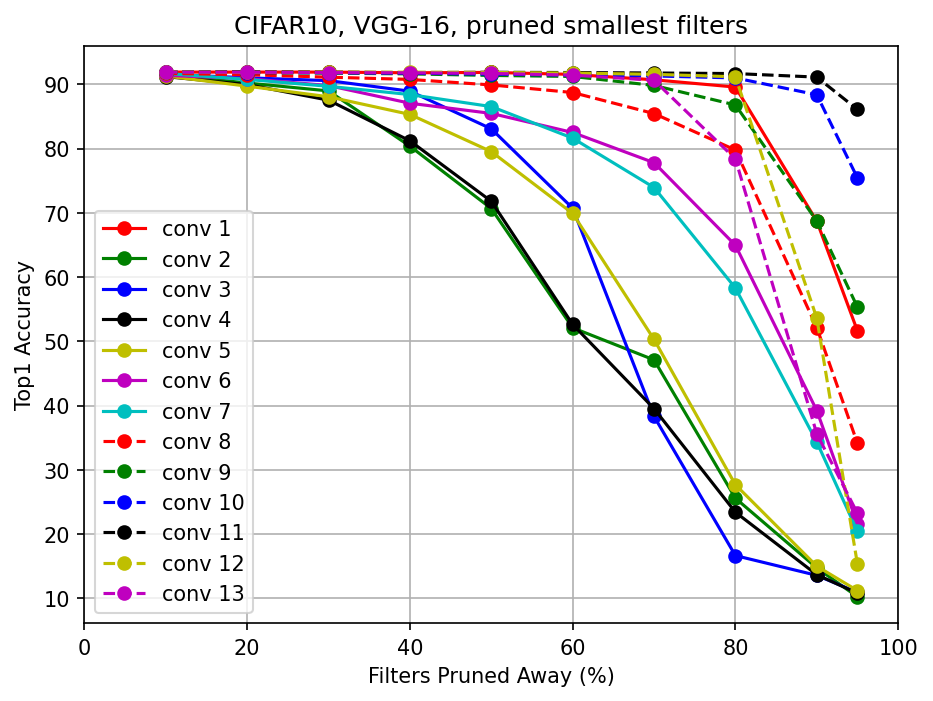앞쪽의 conv layer들이 pruning에 sensitive하다고 주장했다.