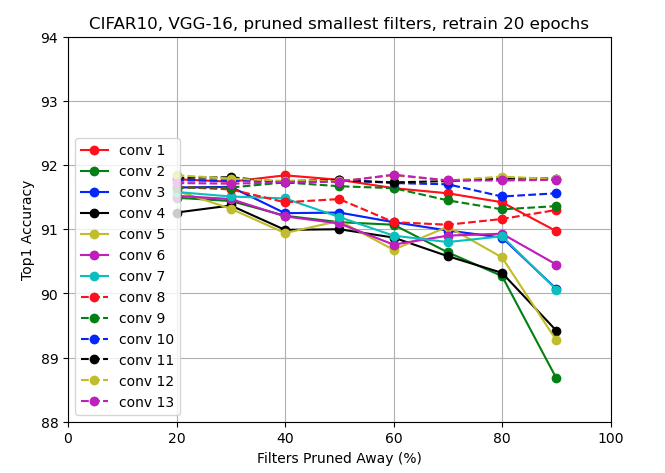 또한 논문과 유사한 결과가 나왔으니, pruning filter 구현을 성공적으로 한 것 같다.