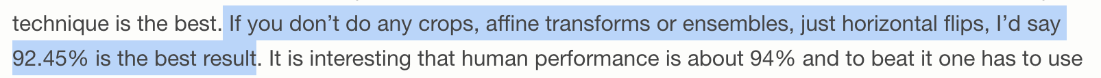 Zagoruyko는 특별한 preprocessing없이 horizontal flip만 해서 92.45%의 accuracy를 달성했다고 했다.