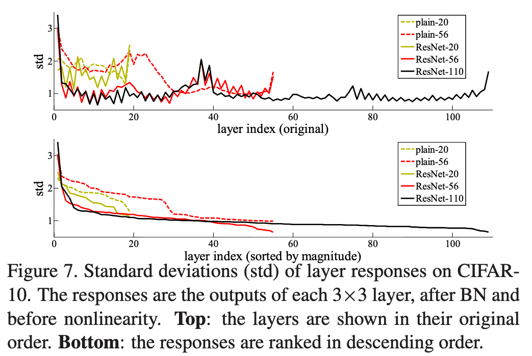 우리는 Figure7에서 learned residual function이 small response를 갖는다는 것을 실험적으로 보여줬고