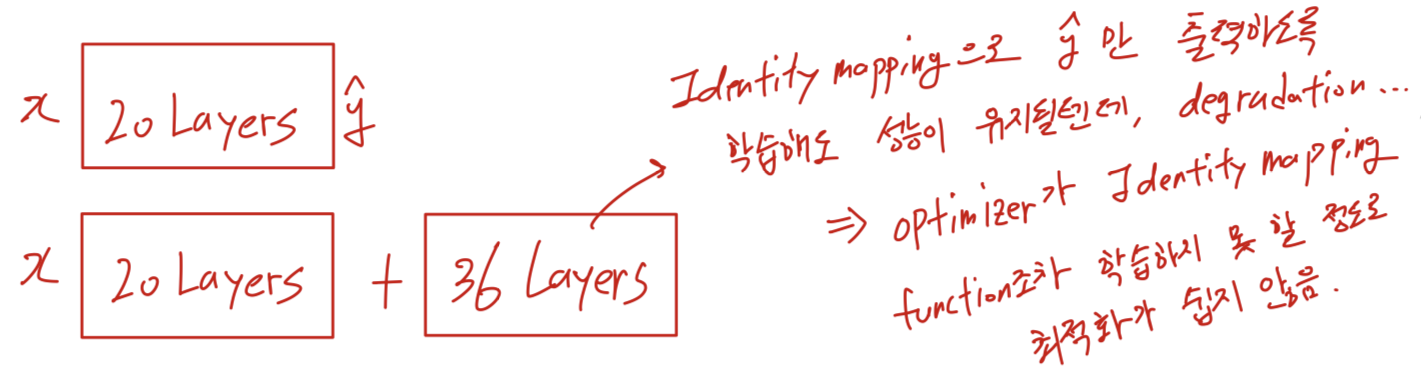 실제 경우에는 identity mapping이 optimal이라고 보기 쉽지는 않지만