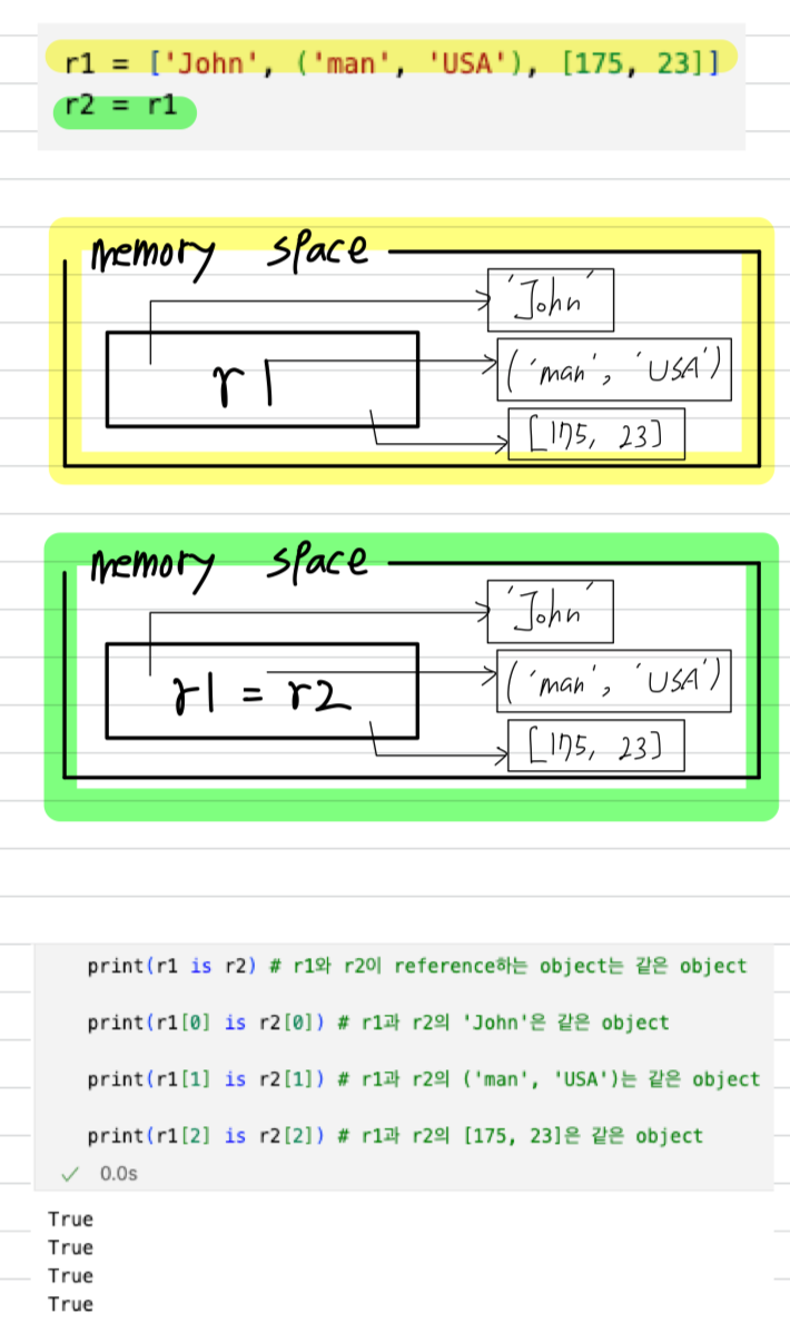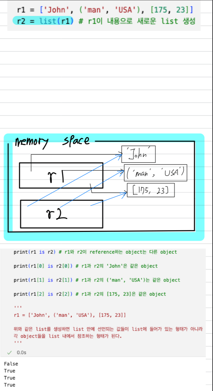 : 변수 v1과 v2가 reference하는 object는 동일한 object인가?r2 = list(r1)
