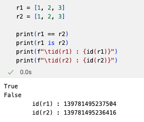 : 변수 v1과 v2가 reference하는 object의 값이 같은가?v1 is v2